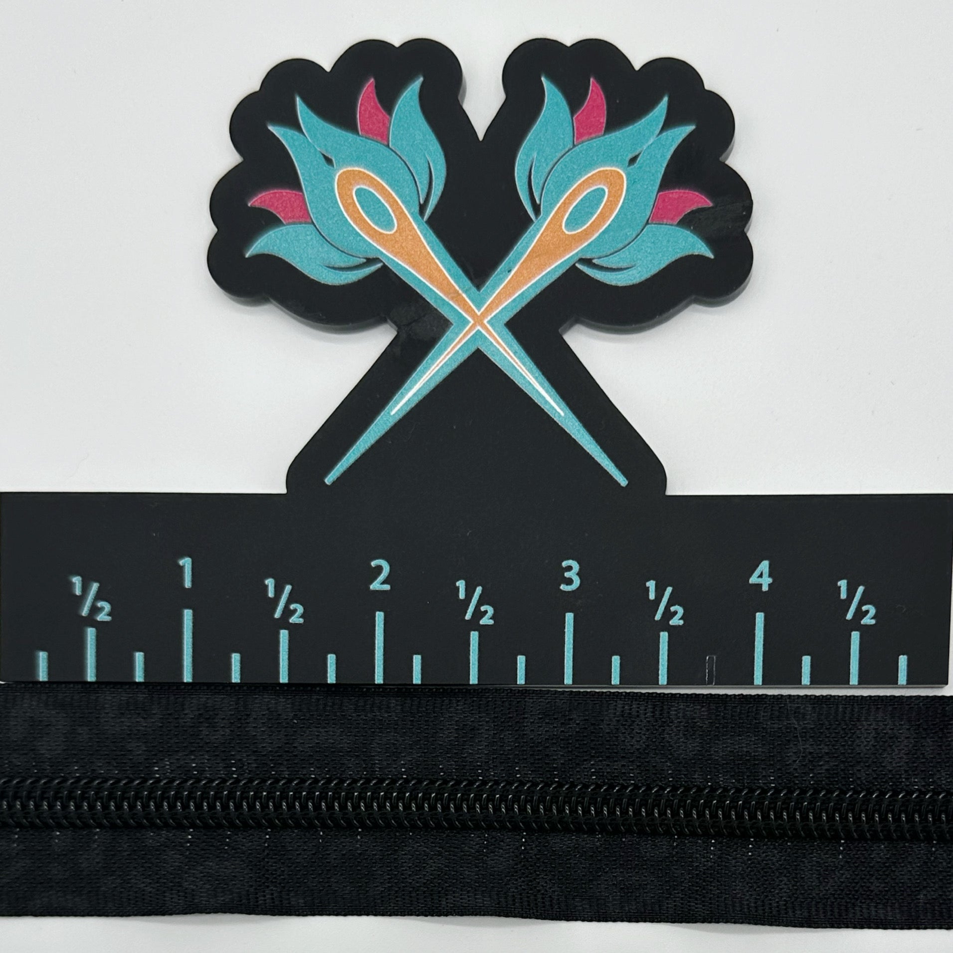 A riff off of our Black on Black Leopard Vinyl, this custom designed printed nylon zipper tape is a new colorway for us at W+W Co.! Printed on both sides so you don't have that boring white, unprinted side visible! This design features a darker background with lighter spots.
