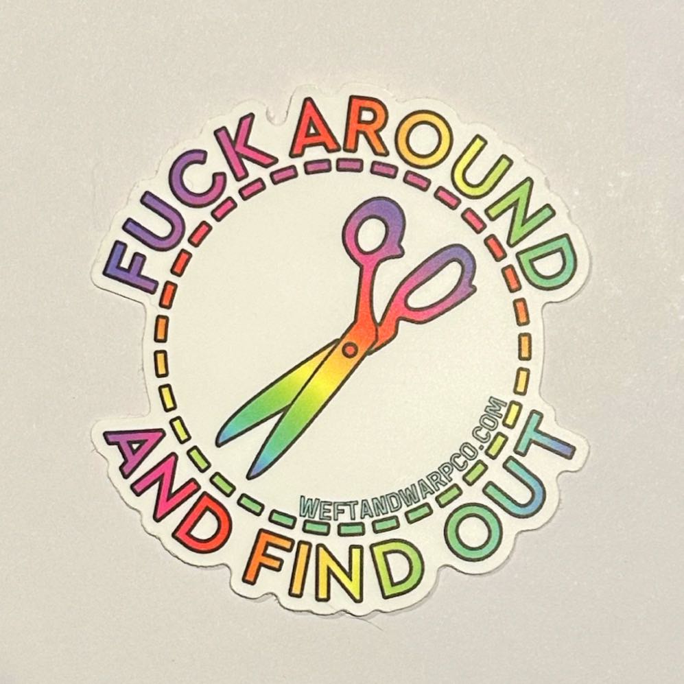 Fck Around Scissors Sticker - rainbow