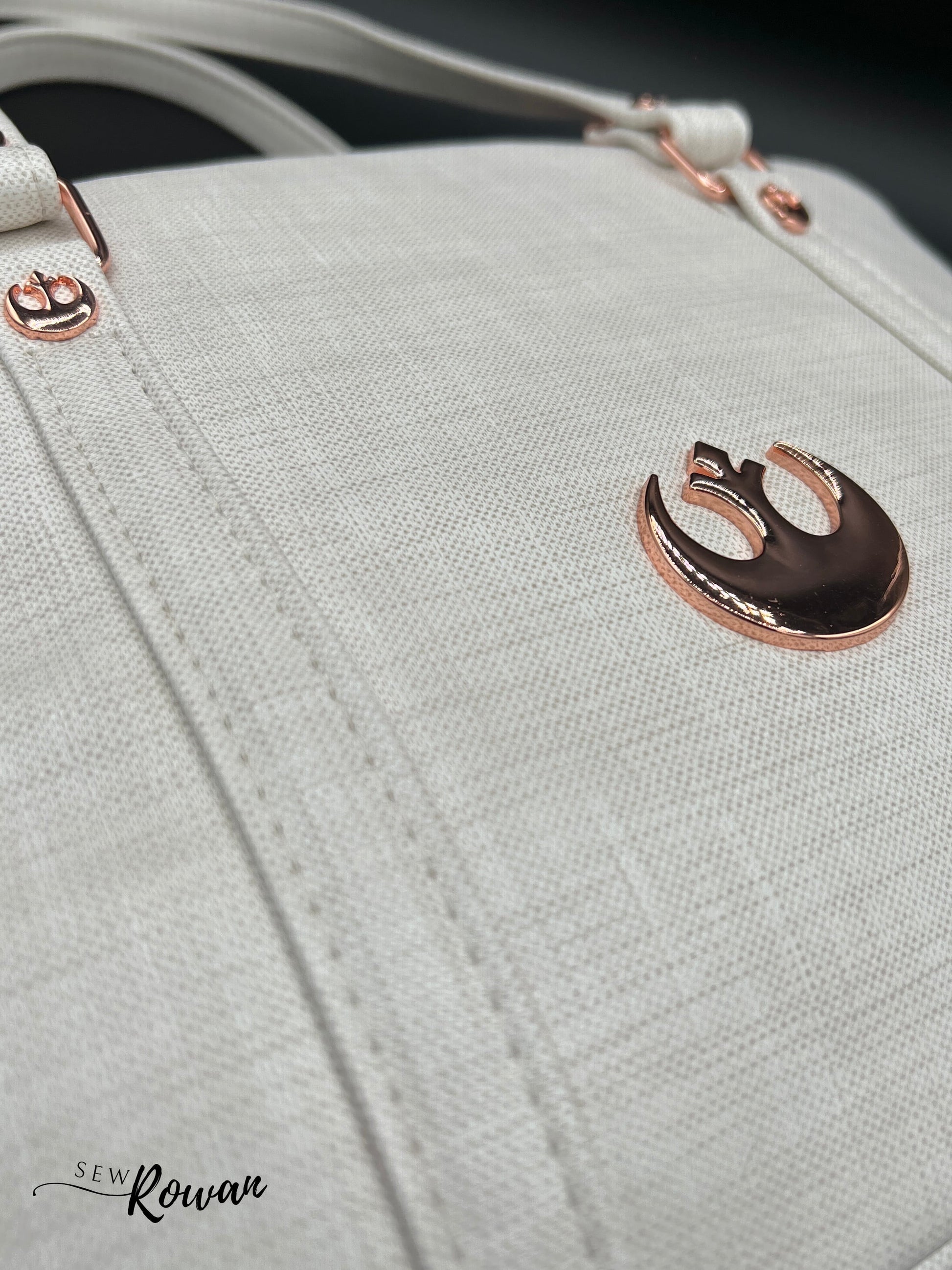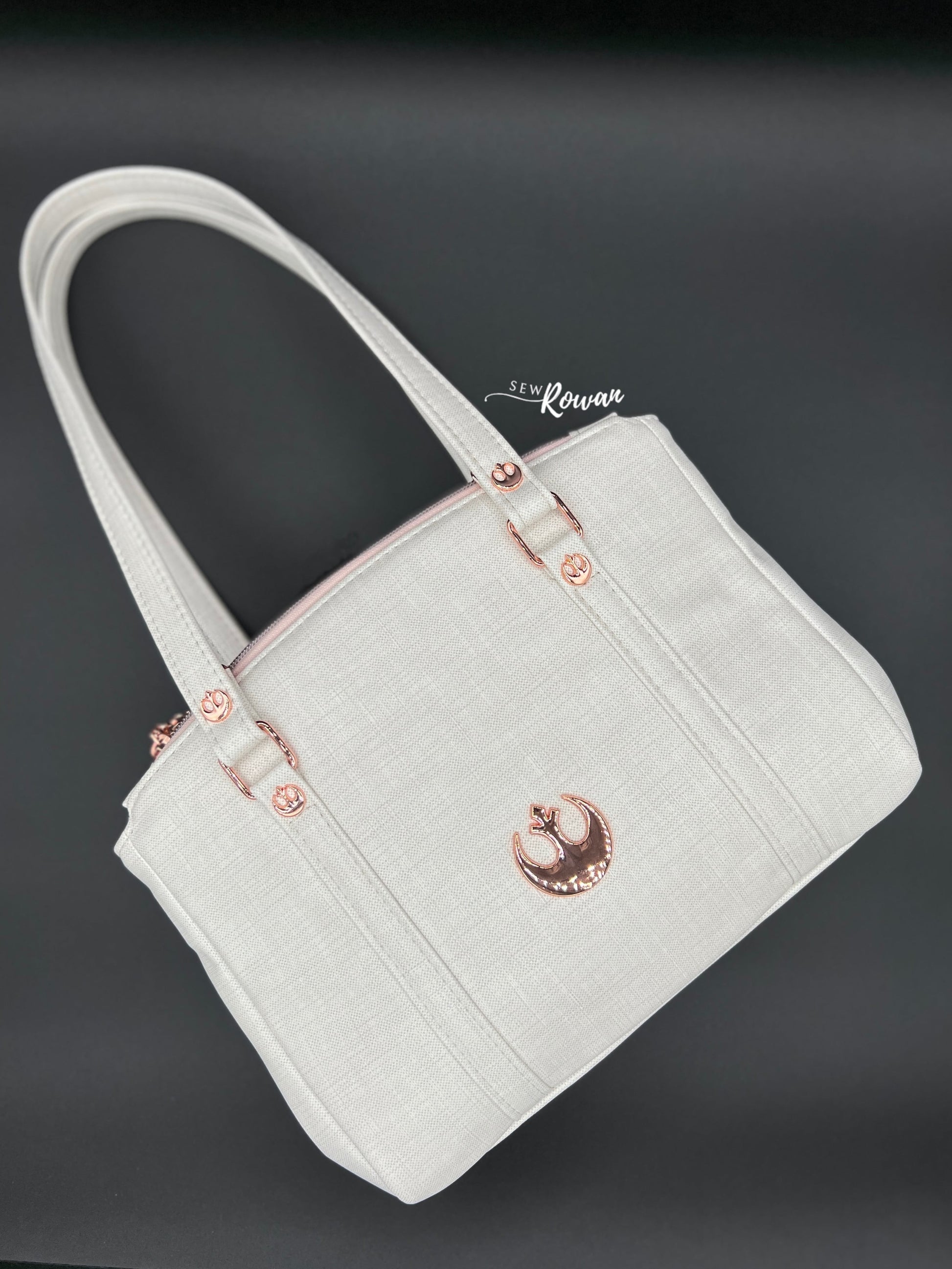 You can forego interfacing this as there's enough structure without it. However, you can apply heat to it but as with most vinyl, use a Teflon sheet or pressing cloth on the wrong side, not the right side. It is difficult to crease, but just in case, creases can be removed by unfolding it and leaving it flat overnight, pressing it, or tossing it in the dryer on low for a few minutes.